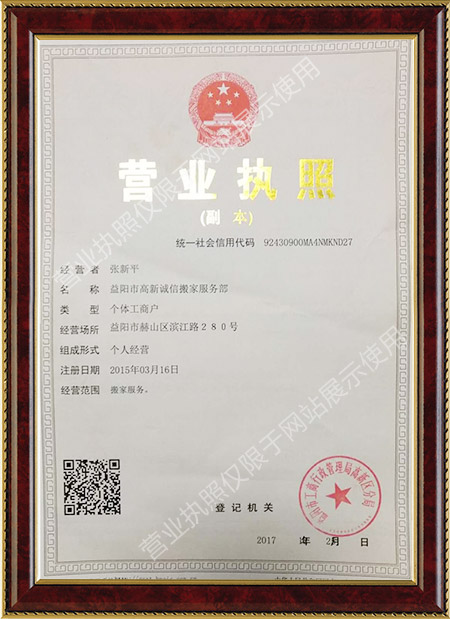 益阳市高新诚信搬家服务部是益阳地区规模大的正规品牌搬家搬迁公司。公司下设搬家搬迁部、设备起重吊装部,运营网络覆盖整个益阳地区及周边区域。